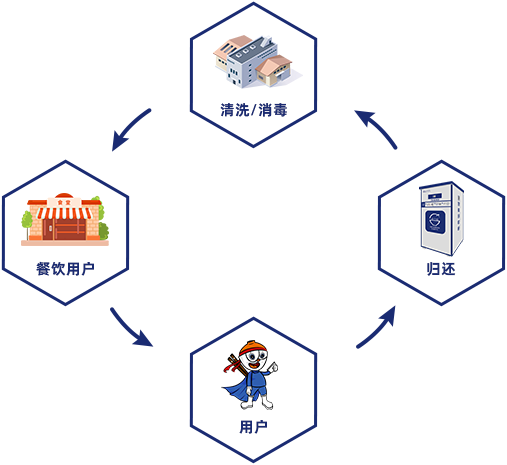 首创可循环共享餐具模式,并打造S2B2C的服务平台,自主研发的可循环环保餐具、智能回收终端设备、运营管理系统。